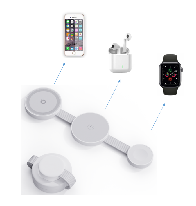 Mobile phone: 15W (MAX)Earbuds: 5W (MAX)Apple Watch: 2.5W (MAX)1. TX input: 5V/3A or 9V/2A2. Conversion rate: up to 80%.3. Operating frequency: 105KHz~200KHz4. Color: Black, White5. Material: ABS
